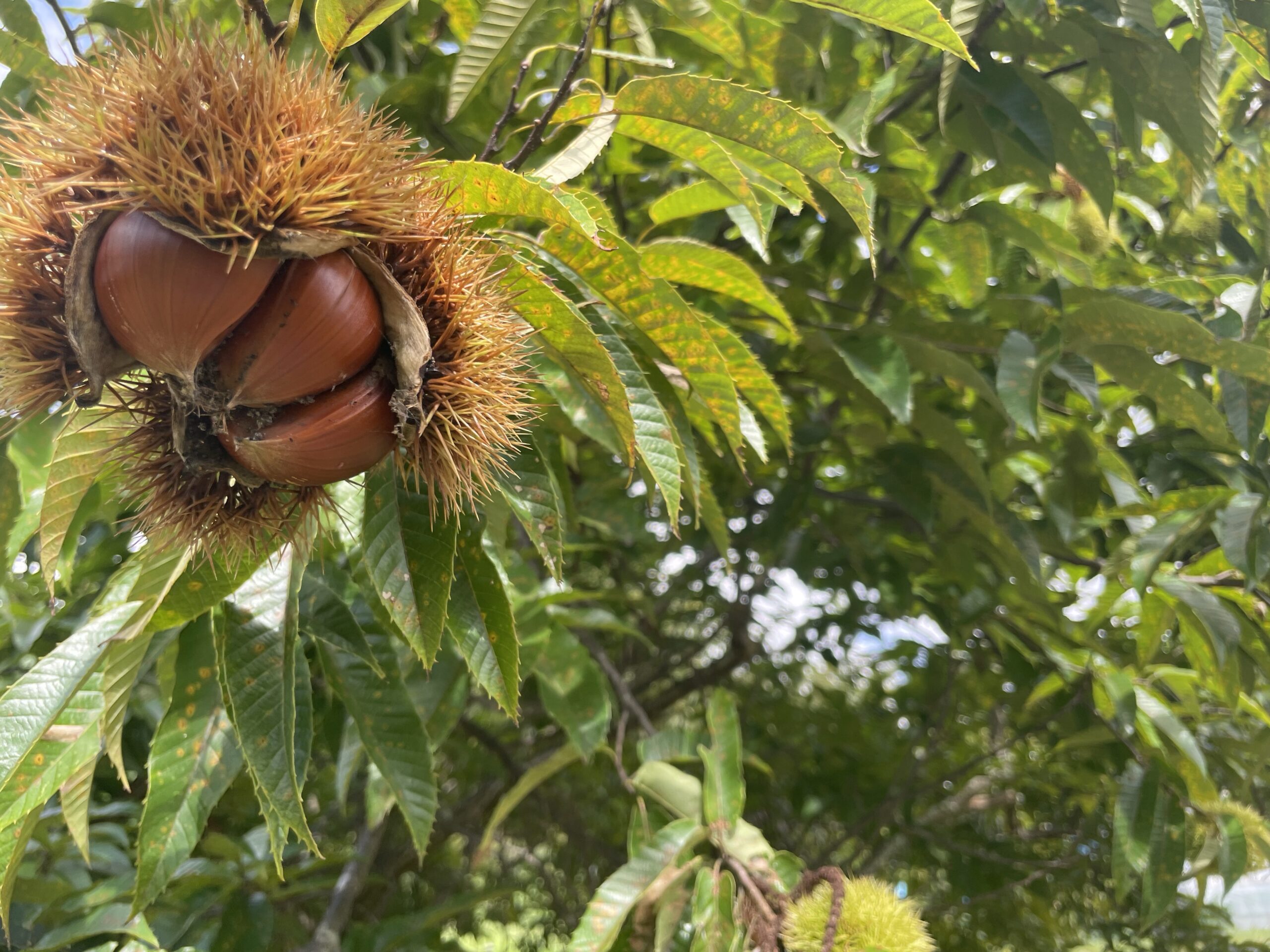 ところで、こちらのお住まいのすぐ後ろには、大きな栗の木が2本生えていて、ちょうど旬というのもあり、立派な栗がたくさん実っていました。