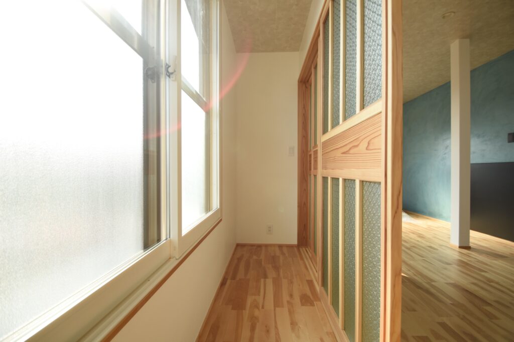 2階の和室は一部を仕切り、まるで縁側を思わせる空間デザインに。陽光が差し込みいつも暖かいのでインナーバルコニーとしても使える。