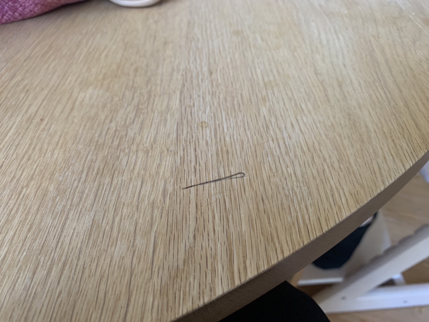 先日自宅にて娘の髪を止めていたブラックヘアピンを外しテーブルの上に置きっぱなしにしてしまいそのまま染みになりました。