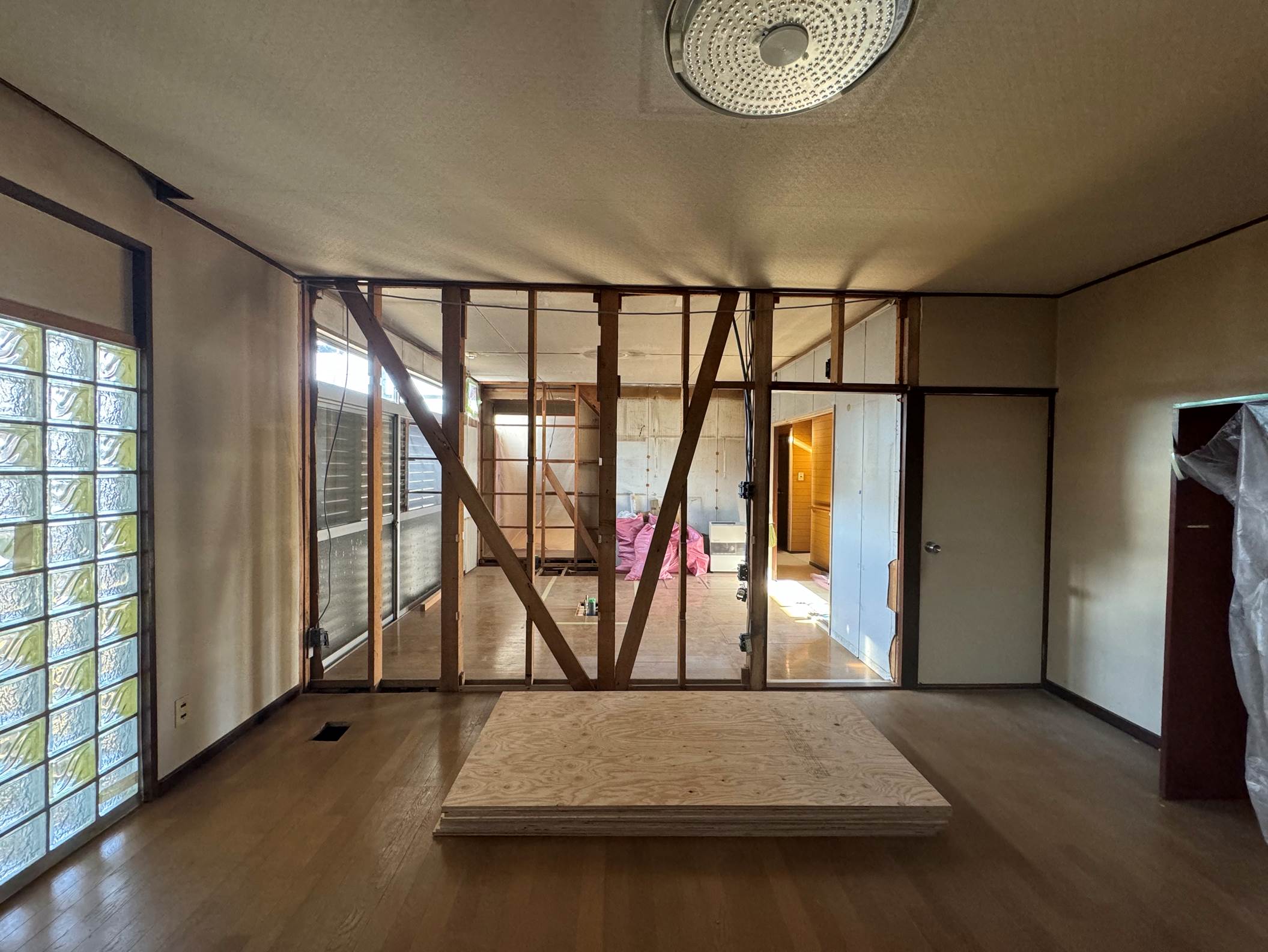 先ずはリビングと台所の間に合った間仕切り壁を撤去して空間的に繋がるプランにしました。