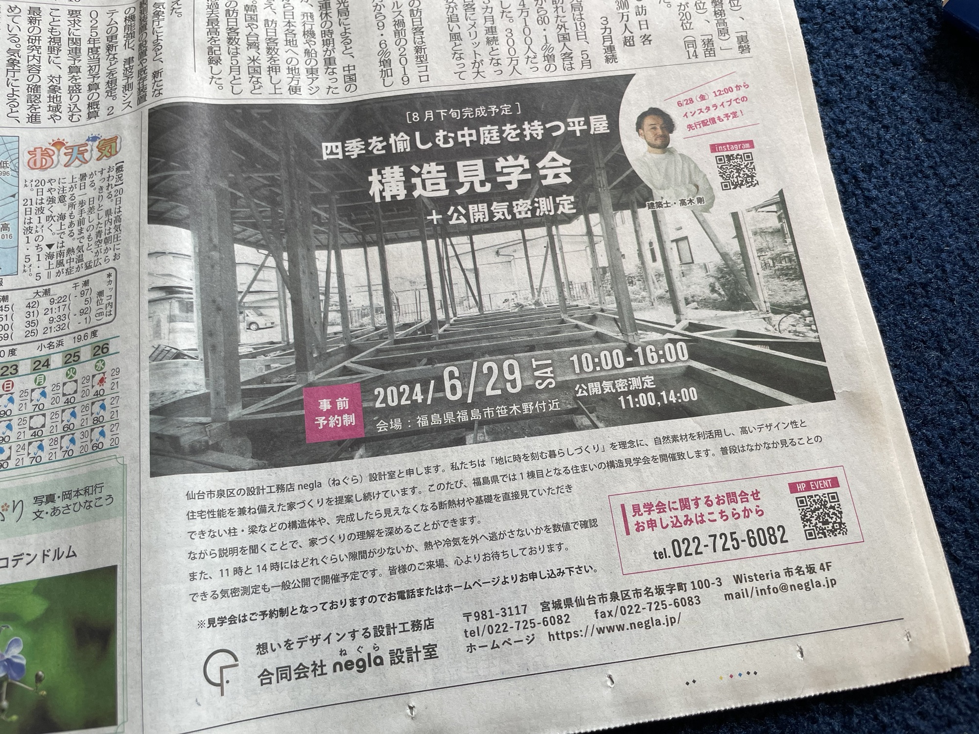 今回はHPやDM、SNS以外にも6/20朝刊の福島民報でも告知させていただいております。