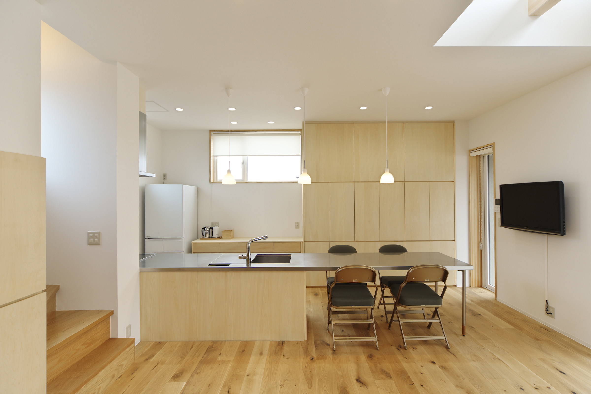 使い勝手とコミュニケーションのしやすさに配慮し、キッチンとダイニングをストレートに配列したオリジナルステンレス製オーダーキッチンを採用