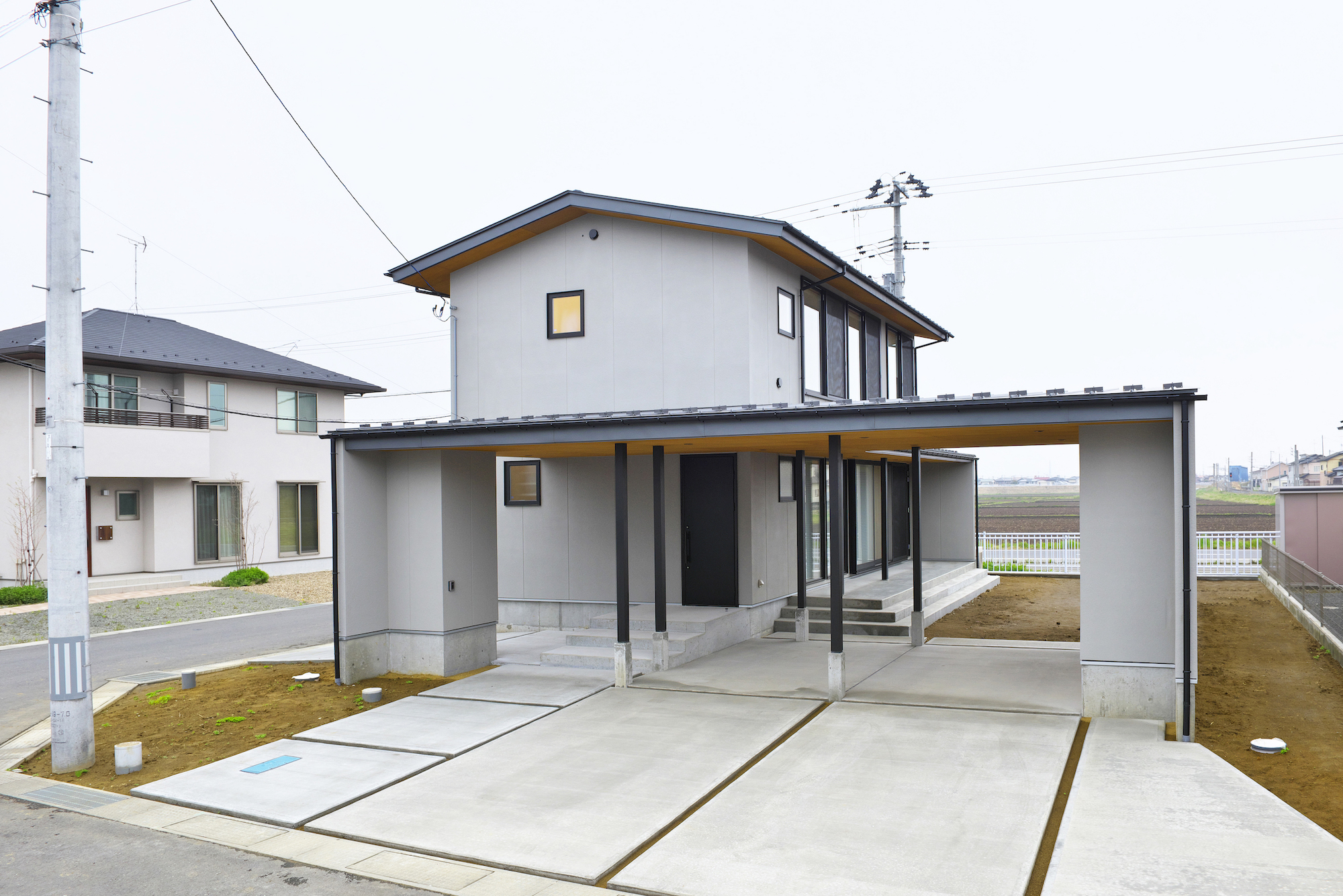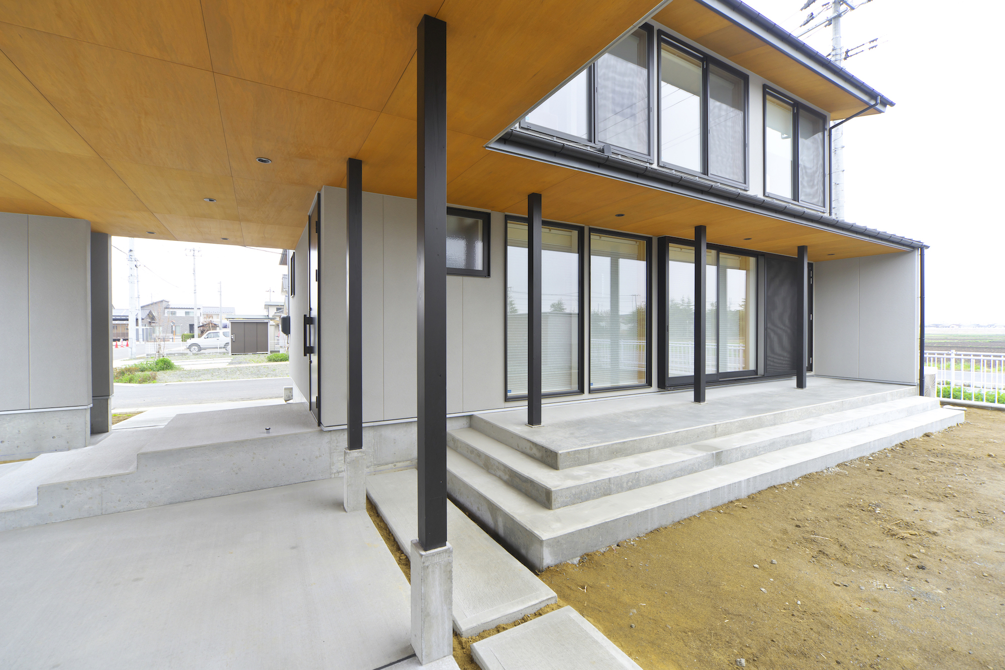 シンプルなトーンのスタイリッシュなフォルムにモダンなガレージが印象的な外観