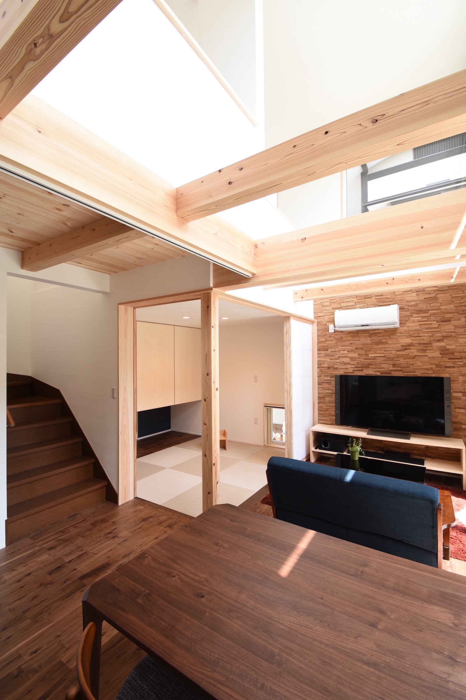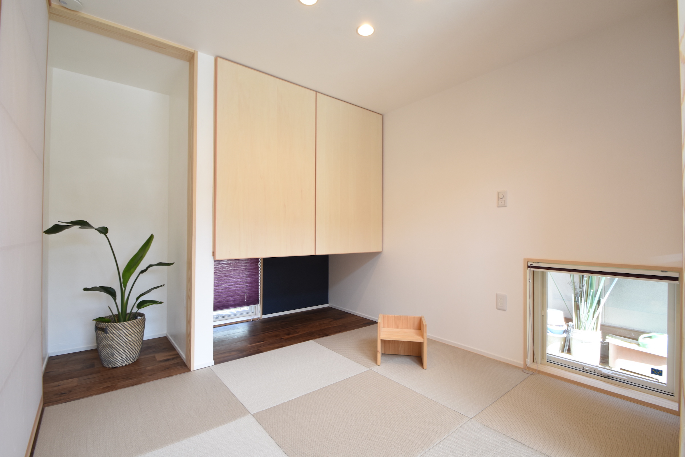 階段脇配した畳の間。仕切ることで個室としても使用できる