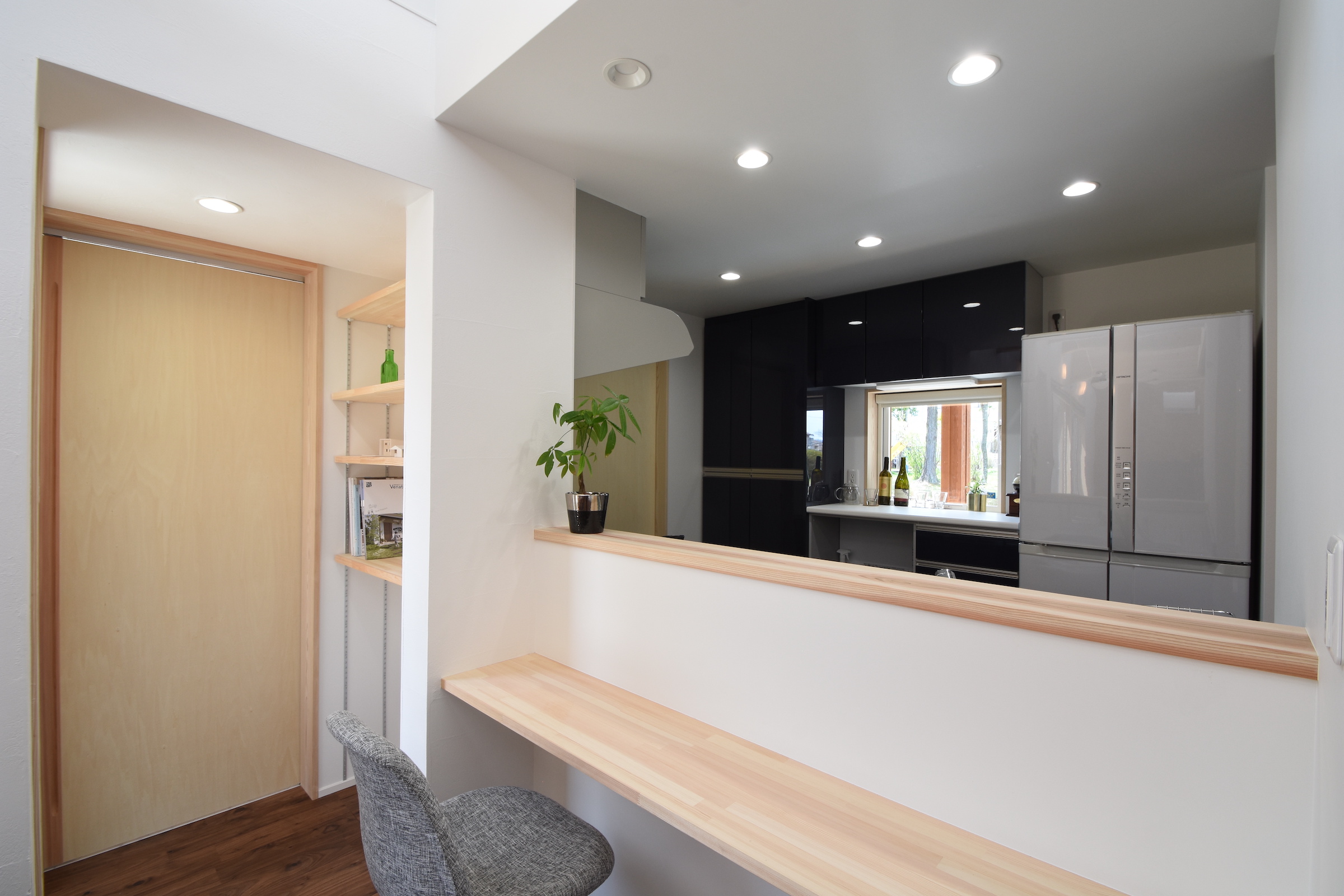 料理をする家族と対面で食事を楽しめるカウンターも設置した