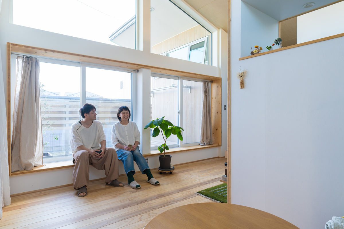 南側に向けて大開口とFIX窓を設置。出窓にすることでちょっとした腰掛けとしても活用している