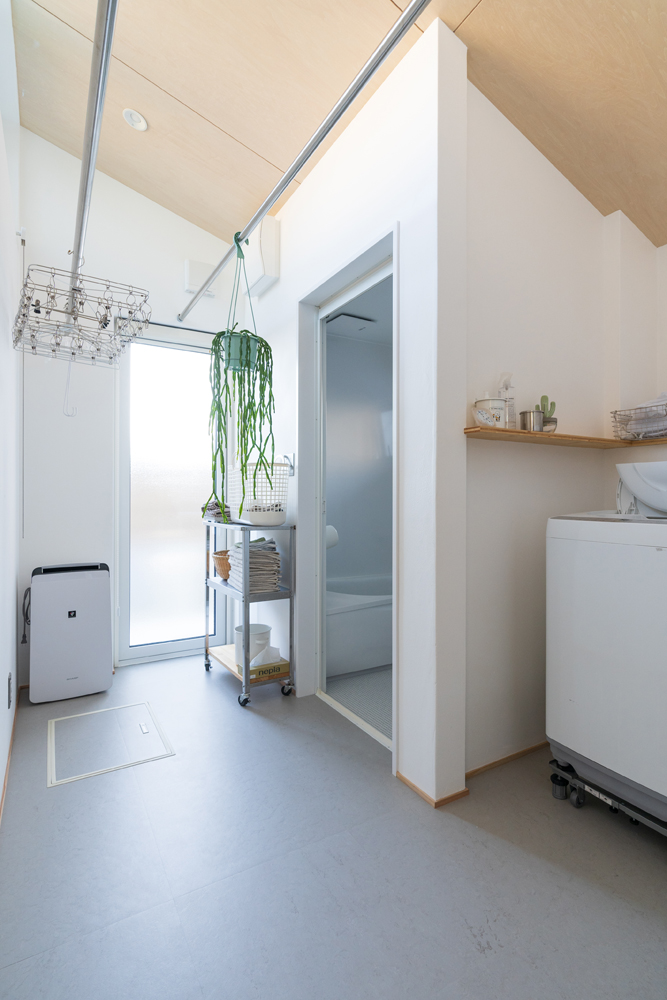 採光に十分配慮した脱衣室。広々とした空間は雨の日の洗濯物干し場としても活躍する
