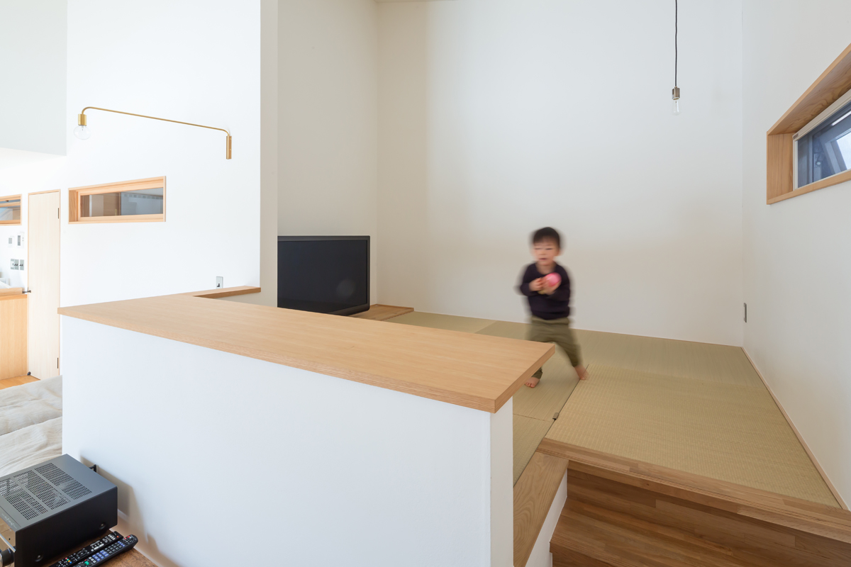 床下収納を備えた小上がりの畳コーナー。将来的にはここを寝室にし、1階で生活を完結することも可能