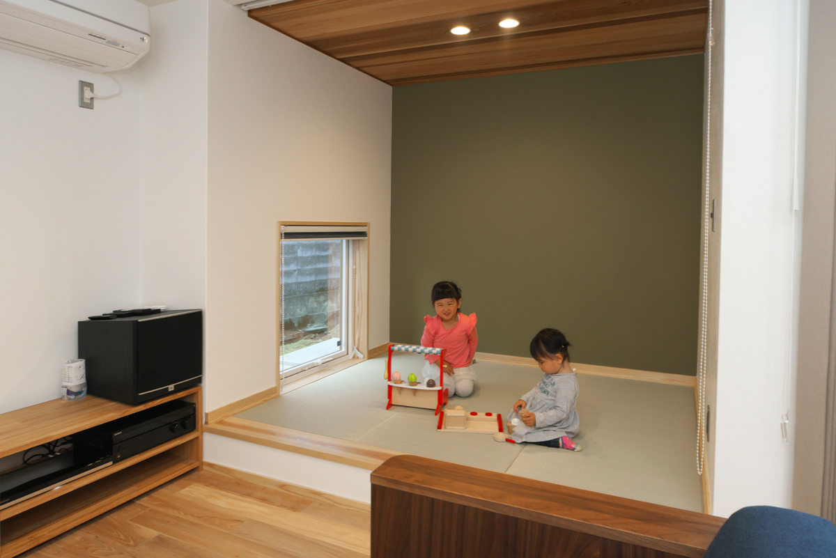 3帖のこぢんまりとした小上がり畳スペースはお子さんのお世話にも便利。畳の下には収納も備える