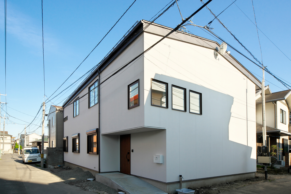 限られた敷地の中でそれぞれのプライバシーに配慮しながら暮らすことができる、明るく快適な三世帯住宅です。