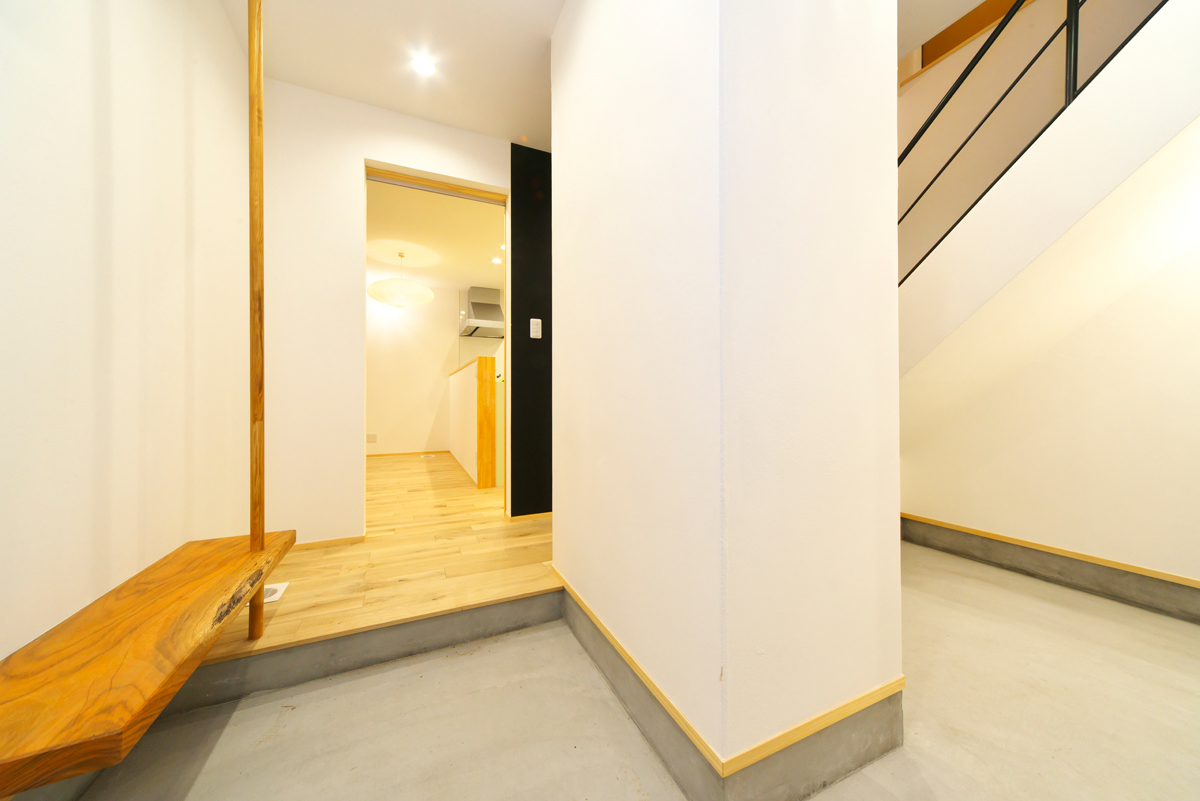 玄関は共用ながら、1階を通らずとも2階に直行できる間取りでお互いのプライバシーを確保している