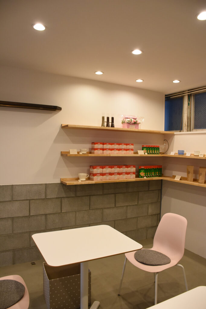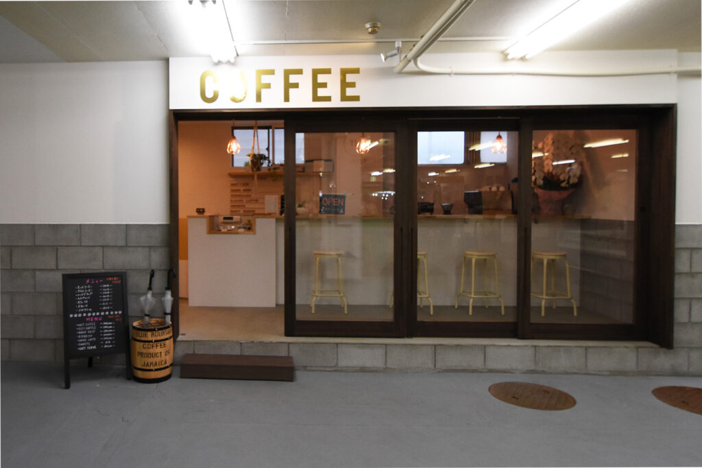 プランニングにおいて特にこだわったのが素材感です。モルタルやブロックなどの無機質の素材と、木製のカウンターや棚といった有機質の素材をうまく組み合わせ、スタイリッシュかつぬくもりのある風合いを心がけました。入り口は間口を大きく取り、誰でも気軽に立ち寄れる雰囲気を演出しているのもポイントです。センスのいいカップや照明、観葉植物などが彩る店内は、老若男女がほっとできる憩いの場となっています。