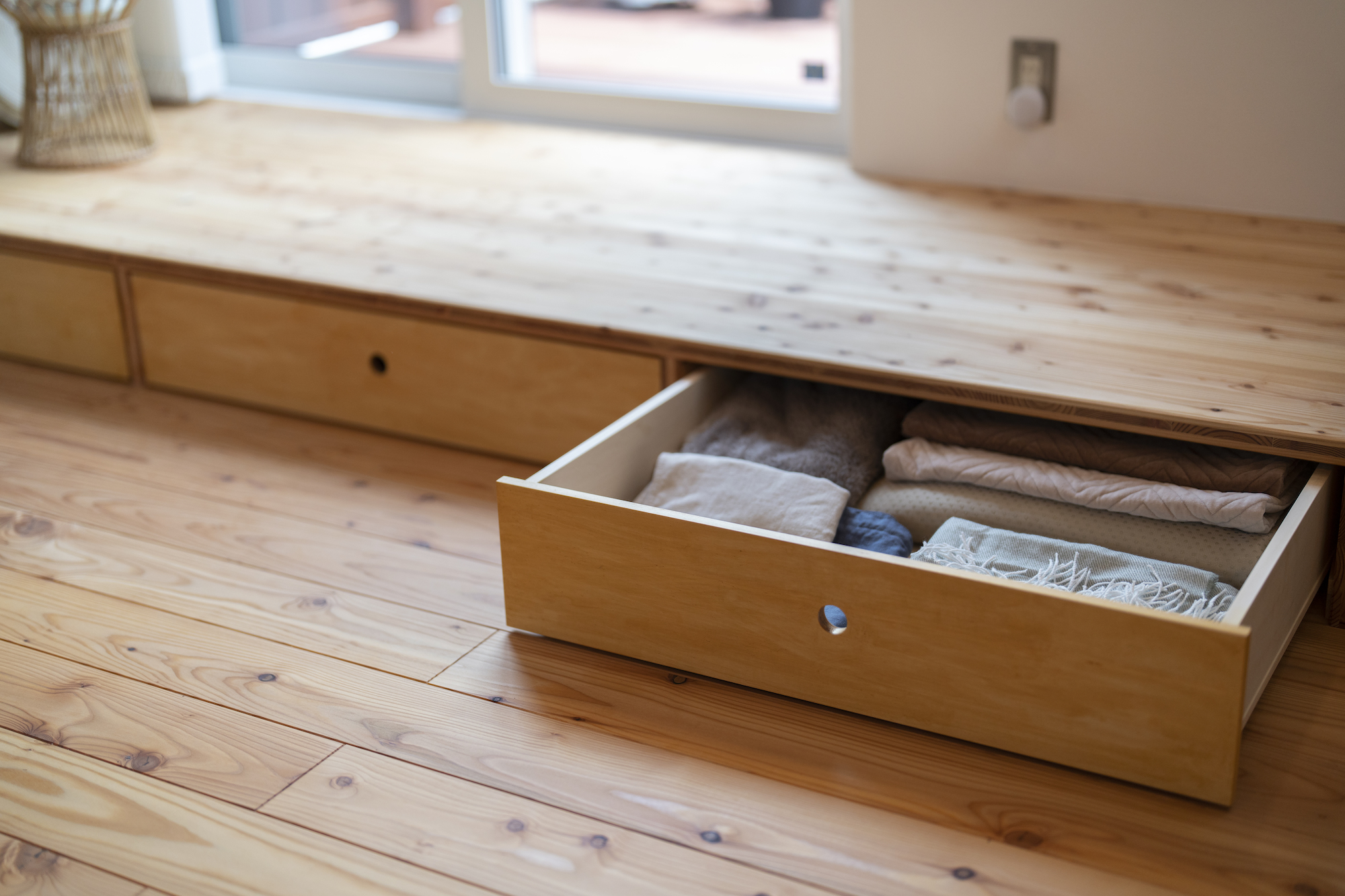 小上がりは床下収納になっており、空間を無駄なく生かす設計が施されている