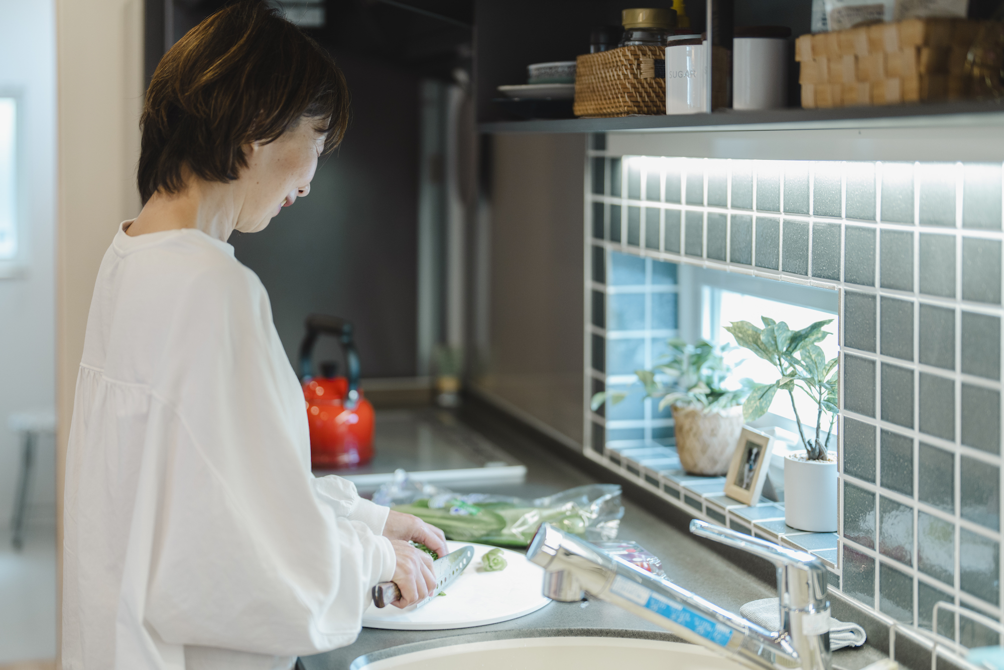 以前の住まいでは対面キッチンだったというご家族。使い勝手と暮らし方に合わせて壁付けキッチンを採用