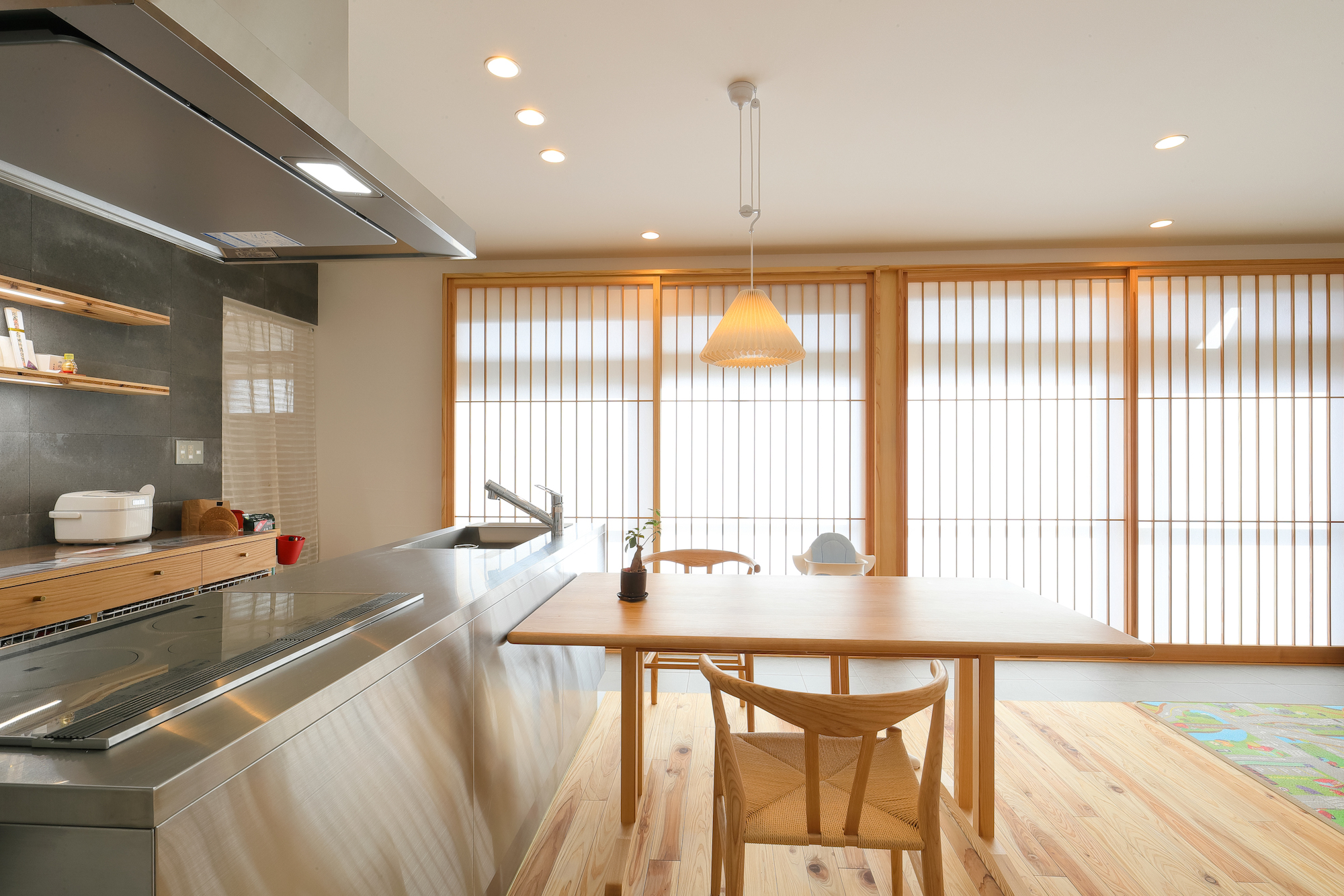 暮らしやすさ、生活動線、住宅性能を軸にプランニングした家族の想いを体現したお住まいです。遊び盛りの子どもにも配慮した、間仕切りの少ないシンプルな間取りと行き止まりの無い回遊動線で、家族とのコミュニケーションが自然と生まれ、家事の利便性もUP。気密や断熱などの住宅性能も向上し、快適なお住まいへと生まれ変わりました。