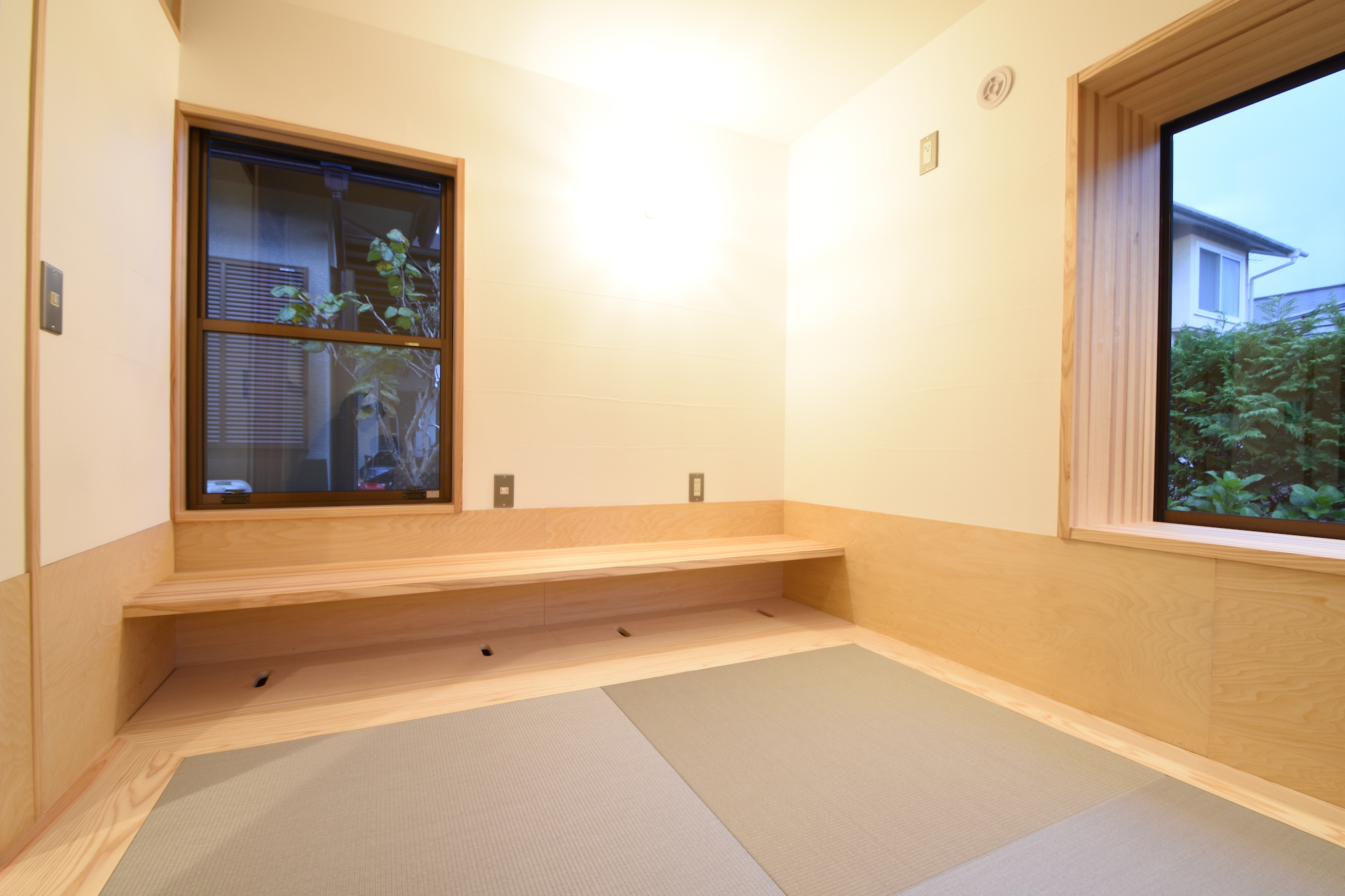 ご家族の要望を反映した畳の「おこもり部屋」。ゲストルームとしても活用しているそうだが、居心地が良すぎて家族の寝室としても使っているそう