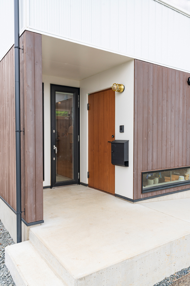 玄関ドアの脇にはリビング側の広い土間空間へと通じるテラスドアを設置。2つの動線で暮らしやすさもアップ