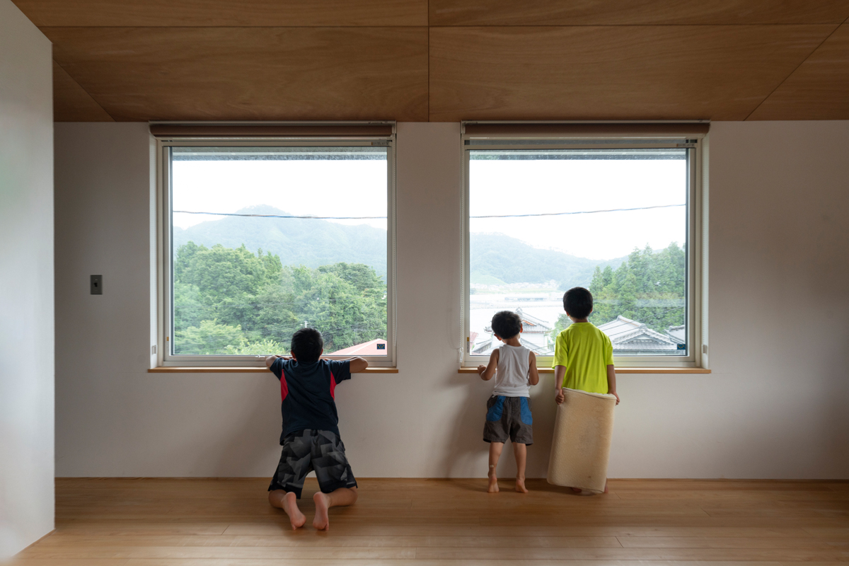 2階東側の窓からは光を取り込むだけでなく、遠方に太平洋を望める。立地特性を活かした爽快なプランだ