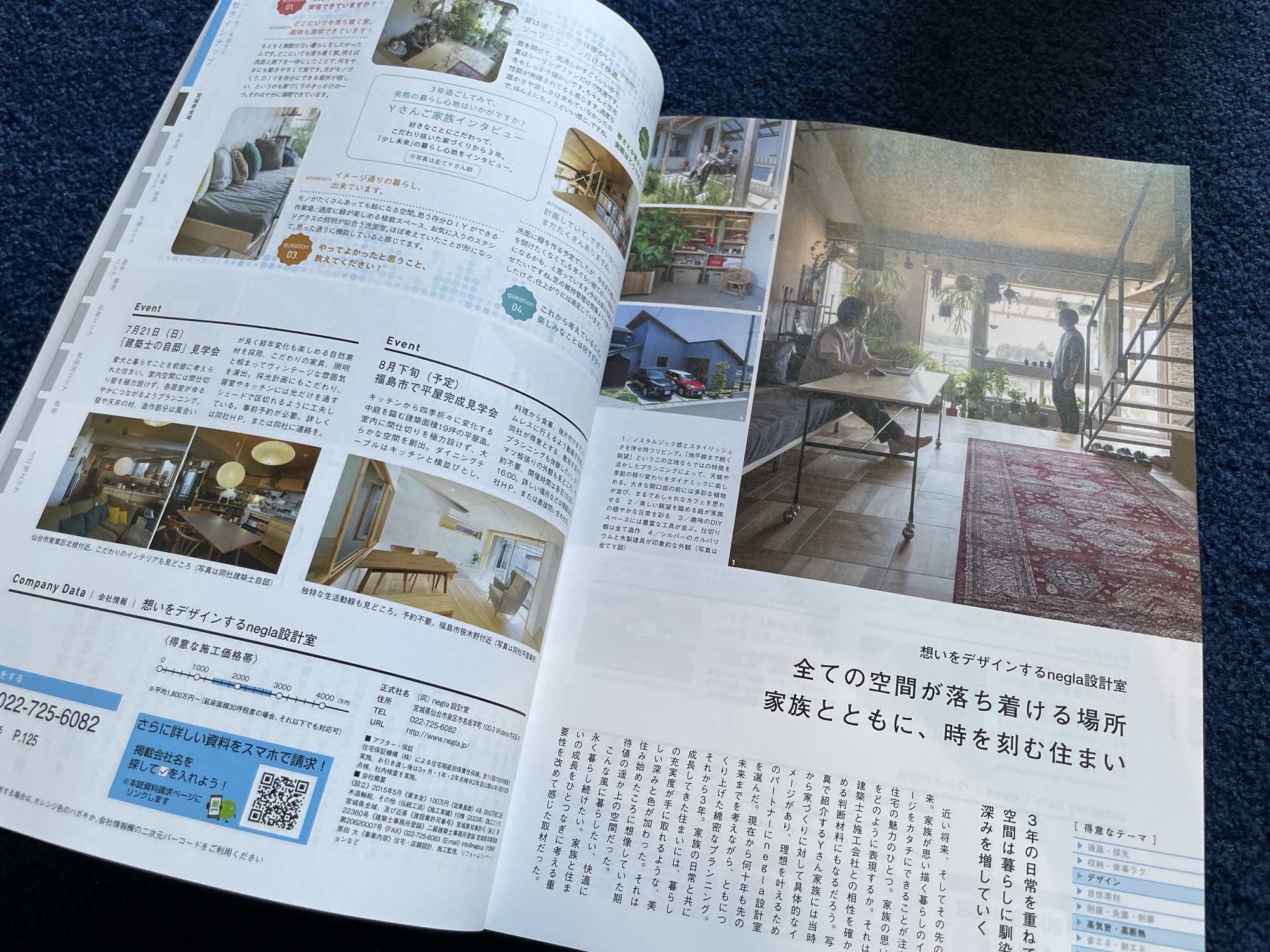 2024年6月21日にリクルートから発売されました「suumo注文住宅 みやぎで建てる」2024夏秋号にて、当社negla設計室の住宅事例が紹介されました。