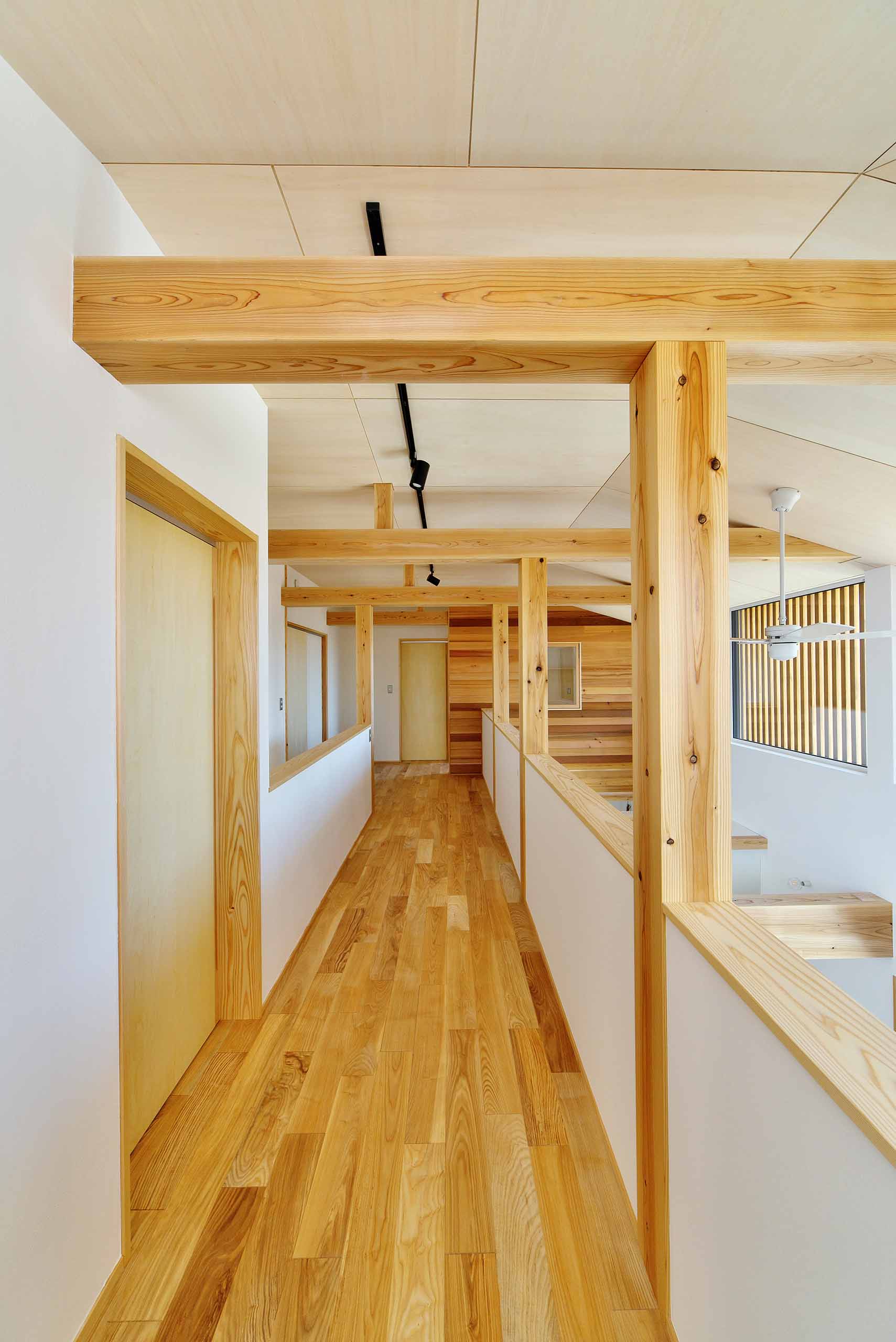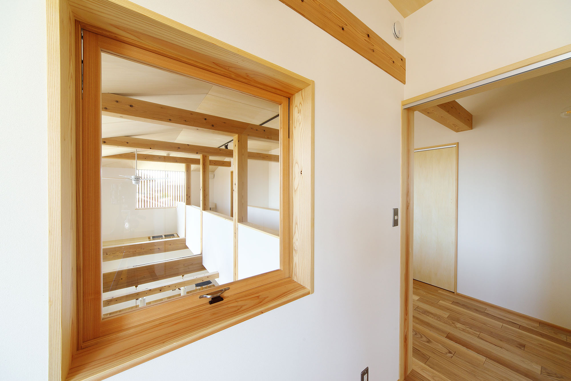 2階子ども部屋の室内窓を開けると、階下の家族と会話ができる