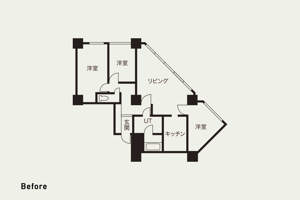 ・もともと3LDKだった空間を、つなげることで開放的に