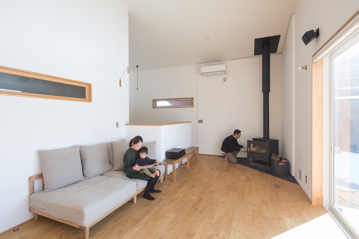 「アパート時代は窮屈な生活でしたが、今はカーテンいらず。息子もはだしで家の中を走り回ったり、外で虫を捕まえたり砂遊びや水遊びをしたりと、最高の環境でのびのびと育っています」と奥さん。ご主人も、「この辺りは仙台の中でも寒さが厳しいエリアですが、住宅性能が高いので薪ストーブ1台で充分暖かく快適。家にいる時間が楽しくなりました。neglaさんとの家づくりはとても楽しく、希望をすべて叶えていただけて大満足です」とにっこり。これから庭に木を植えたり、ファイヤーピットを作っておうちキャンプを楽しみたいと抱負を語っておられました。